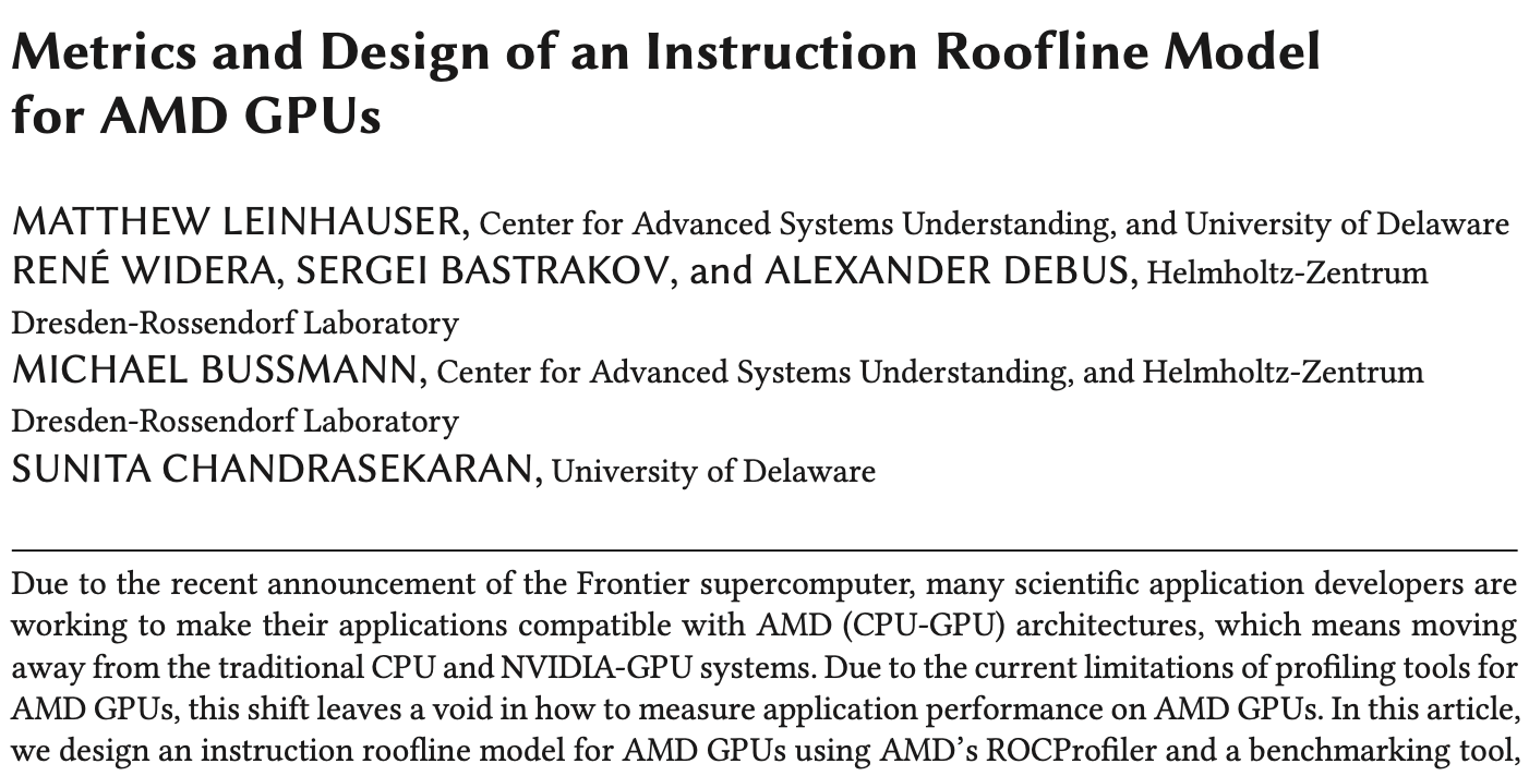For my PhD Preliminary Exam, I conducted research on developing an instruction roofline model for state-of-the-art AMD GPUs. I also modified the report and submitted it for publication. Recently, it was published in Volume 9 of The ACM Transactions on Parallel Computing Journal! Click the image to read the paper.